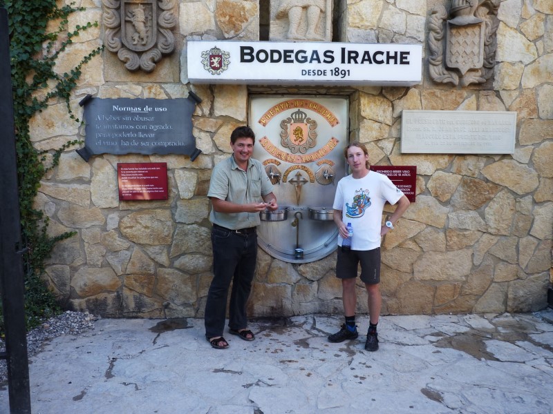 – At a wine fountain with a Spanish camino friend. We actually walked there in the evening from Estella on the day before, to be able to start early the next morning (the fountain opens only at 8 am)