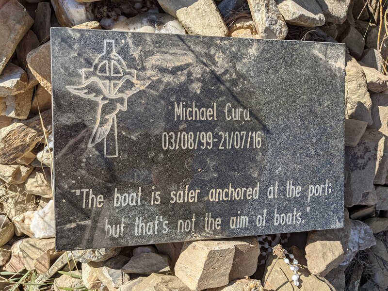 – Cruz de Ferro late in the afternoon. I walked there from Foncebadon, leaving my backpack in the albergue and taking just a bit of water.