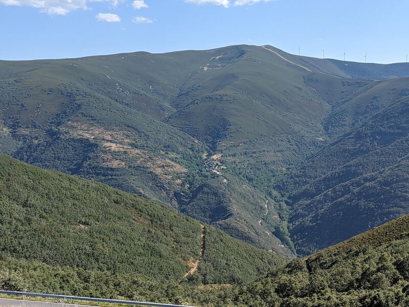 – The Leonese mountains from one of the viewpoints along today’s way.