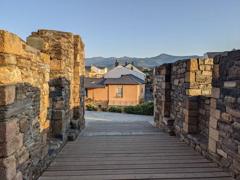 - Ponferrada Castle and town center: Massive 12th-century Templar fortress, location and reviews on Google maps here. Templar knights played a pivotal role on the Camino in the past, and you can learn more about it while visiting the castle. Normal price 6 euro, if you bring a credential you’ll get a pilgrim discount and pay 4 euro. Open daily from 10am to 2pm and then from 4:30pm to 8:30pm. If you’re not into paying fees for entering places on the Camino, the town center of Ponferrada is still very nice, with some stunning views and lights in the evening.