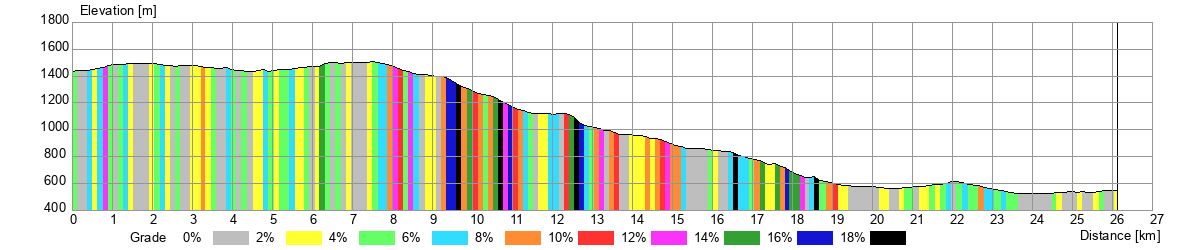 – Alternative route, the only difference is in the last 5 kilometers, when you follow the national road, and avoid a few small climbs, saving about 30 vertical meters of climbing/descending. As you can see on the chart, this way is also 1 km shorter than the official camino.