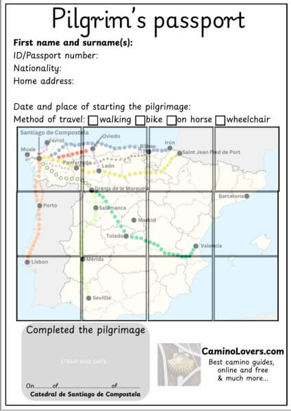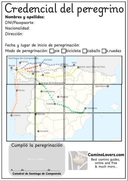 Pilgrim passport (credential del peregrino) is not only an important document that allows you to sleep in pilgrim hostels along the way. It is also the best souvenir you can have from your pilgrimage, and an easy way to recall all the places where you slept along the way. And the small “booklet” that you can get in typical starting places of your pilgrimage is really nice, and recommended to get. In specific circumstances, however, you may want or need the “simple one page PDF print”, just as we offer it for free here on CaminoLovers.com. It’s not to compete with “official” camino associations or organizations who sold their own pilgrim passports… Thank you and buen camino!