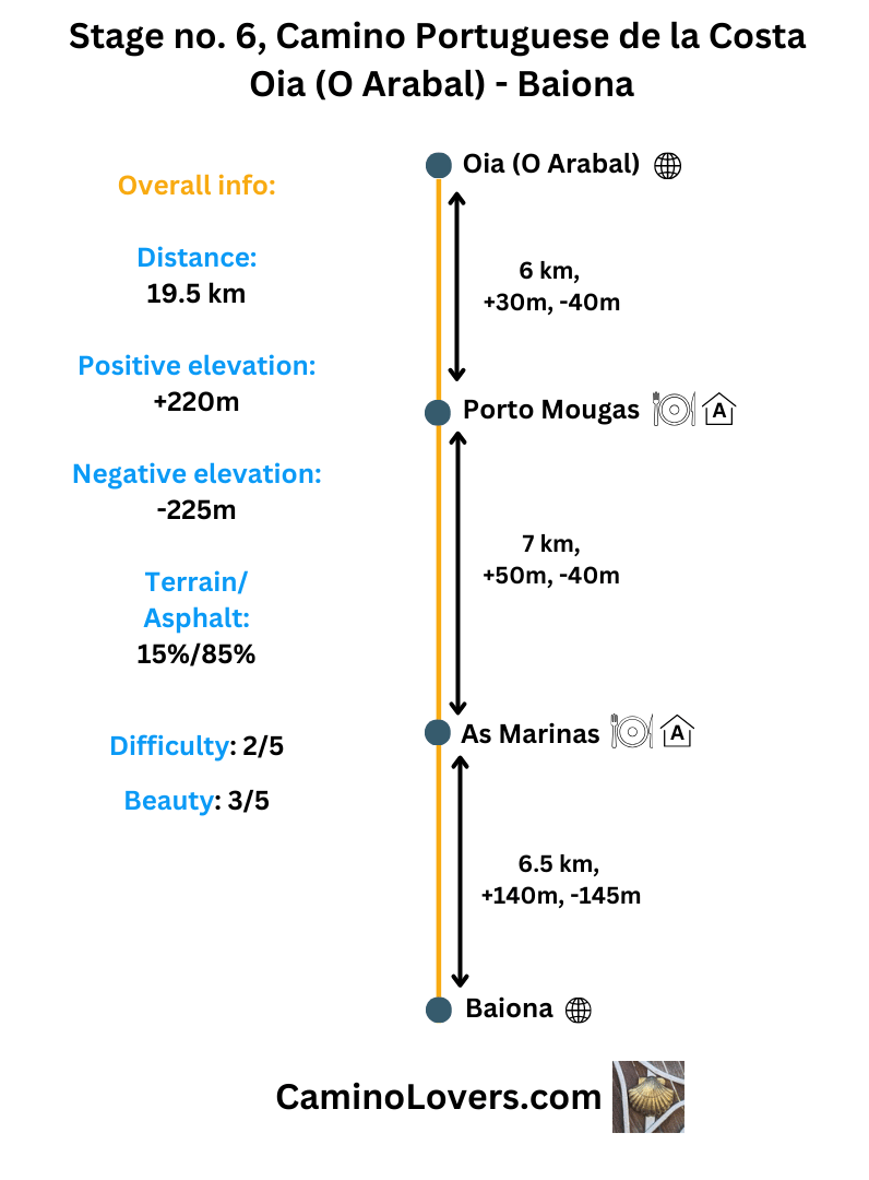 - Next stage: Camino Portuguese de la Costa, Stage no. 7, Baiona – Vigo.