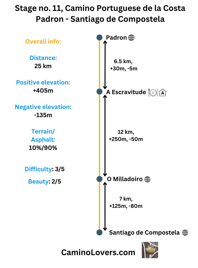 - Previous stage: Camino Portuguese de la Costa, Stage no. 10, Caldas de Reis – Padron.
