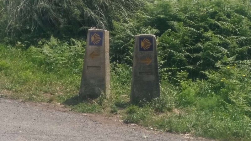 – Markers pointing in both direction, with the sign of kilometers left to Santiago missing. May seem like a mystery to an outsider. However, the simple explanation is that with the sheer number of people on the last 100 km, and plenty of souvenirs seekers among them, you’ll find many markers without some part.