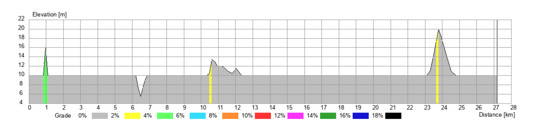 – Official Camino, highest point 140 meters above sea level, with some mild climbs and descends until km 16. The rest of the stage is completely flat though.