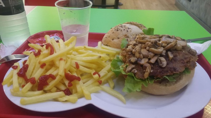 – I got this vegan burger in a random bar along the coast. Did you know that Portugal is the ONLY country in the world, where an option to have VEGAN food is obligatory in public institutions, such as schools and hospitals?