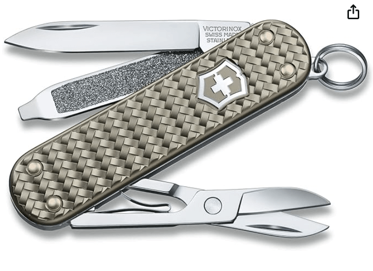 | Matej’s note | This knife is just unbeatable. It has all a woman needs on the Camino, and weights less than 20 grams. It is beautiful too, and comes in many different colors. What’s more, it is Victorinox, so it will last you for a lifetime. | This is one of those items you buy one and it serves you a lifetime. I have a similar knife (see a picture below) for over 20 years now. It served me on multiple trips and caminos, and I have not had to sharped it even once! So good are the knives from Victorinox. Get it, I promise you that you won’t regret it. |