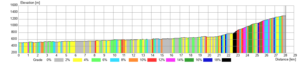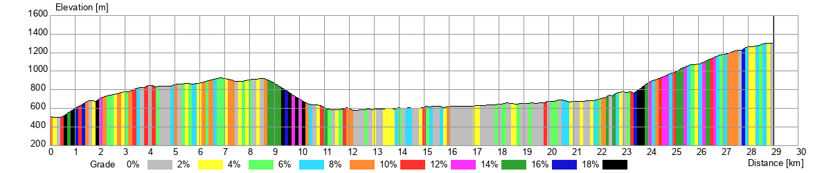 Elevation profile for the routes