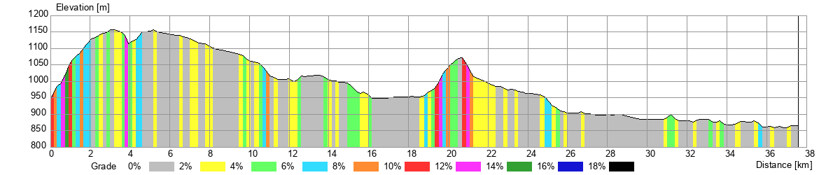 – Variant following the cycling way, the flattest from the three, though the first 15 km are identical with the road N120 variant.